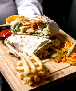 Le sandwich kebab est généralement servi avec une portion de frites ou de riz. Il peut également être servi avec une salade ou une soupe.