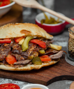 Le sandwich kebab est un plat populaire en Turquie et dans de nombreux autres pays du monde. Il est composé d’un pain pita ou d’un pain plat, farci de viande grillée, de légumes et de sauces.
